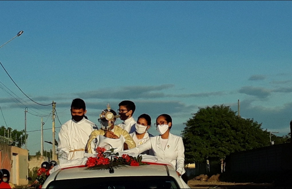 No dia 11 de junho, foi celebrada a Missa Solene de Corpus Christi, presidida pelo Pe. Jaelson Cerqueira, com a presença de alguns dos coordenadores de pastorais e suas famílias, representando os membros de cada pastoral e/ou movimento, com todas as medidas preventivas necessárias para a proteção de todos. Logo após a Santa Missa, todos saíram em carreata pelos arredores da Igreja Matriz, com o Santíssimo Sacramento, levando-o a todos os fiéis que se encontravam em seus lares. A carreata teve finalização na Comunidade Santo Expedito, onde após um momento de adoração, foi dada a benção final. Apesar de todos os empecilhos relacionados ao Covid-19, o Cristo Ressuscitado permanece vivo em nossos corações, nos trazendo esperança de dias melhores.