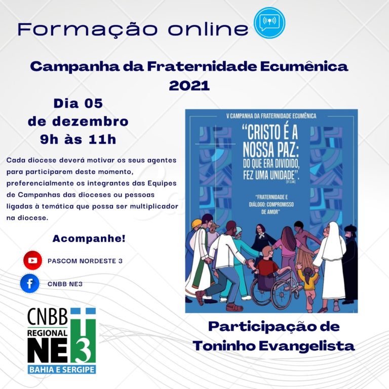 No dia 5 de dezembro, das 9h às 11h, o Regional NE3 da CNBB realizará o . A formação será online e transmitida pelo canal do YouTube da Pascom NE 3 e pela página do Facebook da CNBB NE 3. A proposta da formação está integrada ao seminário nacional sobre CFE, que será realizado nos dias 1º, 2 e 3 de dezembro, às 19h30, pelos canais da CNBB Nacional.