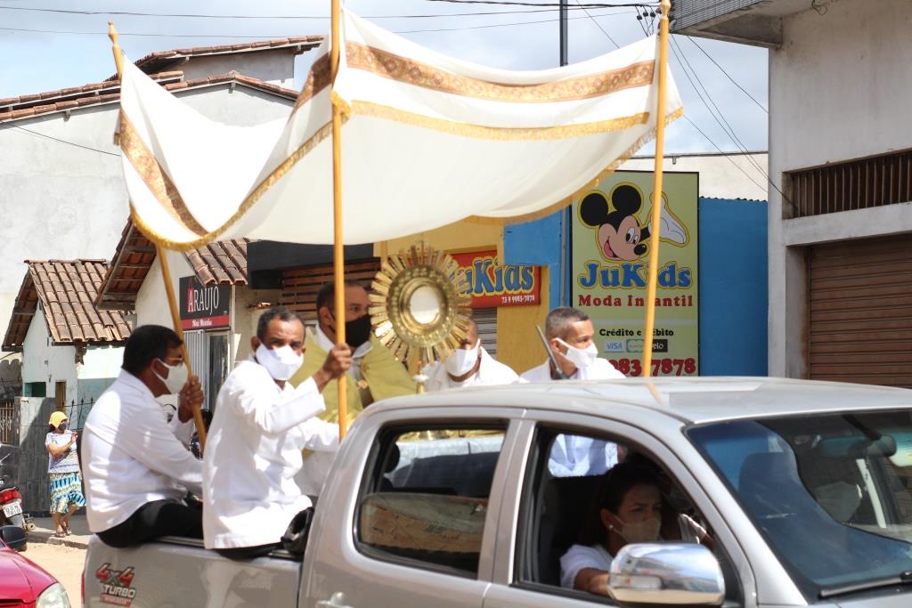 Na Catedral São Pedro, a Missa das 09h foi presidida pelo pároco, Pe. Edivaldo Oliveira Santana. Após a Comunhão, o Pe. Edivaldo, conduziu Jesus no ostensório pela nave central da Igreja até a portão externo, de onde seguiu em carro aberto percorrendo ruas da circunscrição da Catedral. Ao chegar na frente da Igreja abençoou as pessoas que estavam acompanhando dentro dos automóveis. A missa e a carreata foi transmitida ao vivo pelas redes sociais da Diocese, Catedral São Pedro e rádio Caraípe (100,5). O bispo Dom Jailton presidiu duas celebrações, a primeira na Paróquia Nossa Senhora das Graças às 15h e às 18h na Catedral.