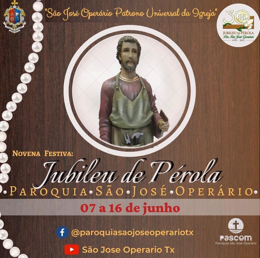 Participe do Jubileu de Pérola da Paróquia São José Operário