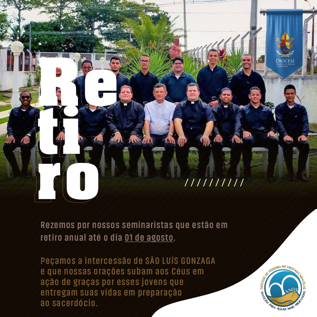 Rezemos por nossos seminaristas que estão em retiro anual. Peçamos a intercessão de São Luís Gonzaga e que nossas orações subam aos Céus em ação de graças por esses jovens que entregam suas vidas em preparação ao sacerdócio.