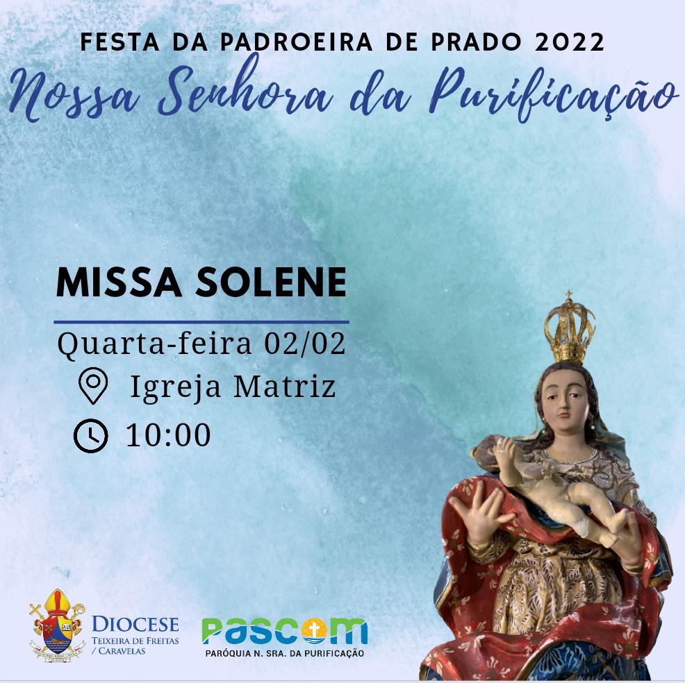 Nossa Senhora da Purificação, excelsa padroeira da cidade de Prado, celebra no próximo dia 02/02 o dia da Senhora da Purificação com os corações em festa em sua Paróquia!