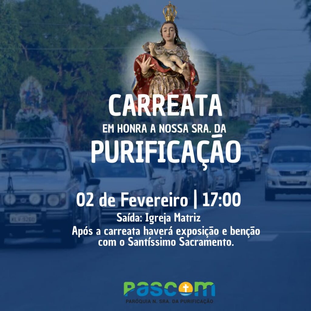A paróquia convida à todos que possam se fazer presente neste dia vir celebrar e participar da festa de Nossa Senhora da Purificação. A celebração ocorrerá nesta próxima quarta-feira, dia 02 às 10:00h na Paróquia Nossa Senhora da Purificação. A Senhora da Purificação, é o farol que ilumina os Pradenses na direção do trono da graça de Deus.