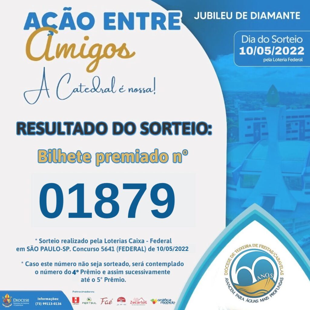 Ressaltamos que o ganhador(a), deverá retirar o prêmio na Cúria Diocesana, no prazo de 60 (sessenta) dias corridos, a partir da data do sorteio.