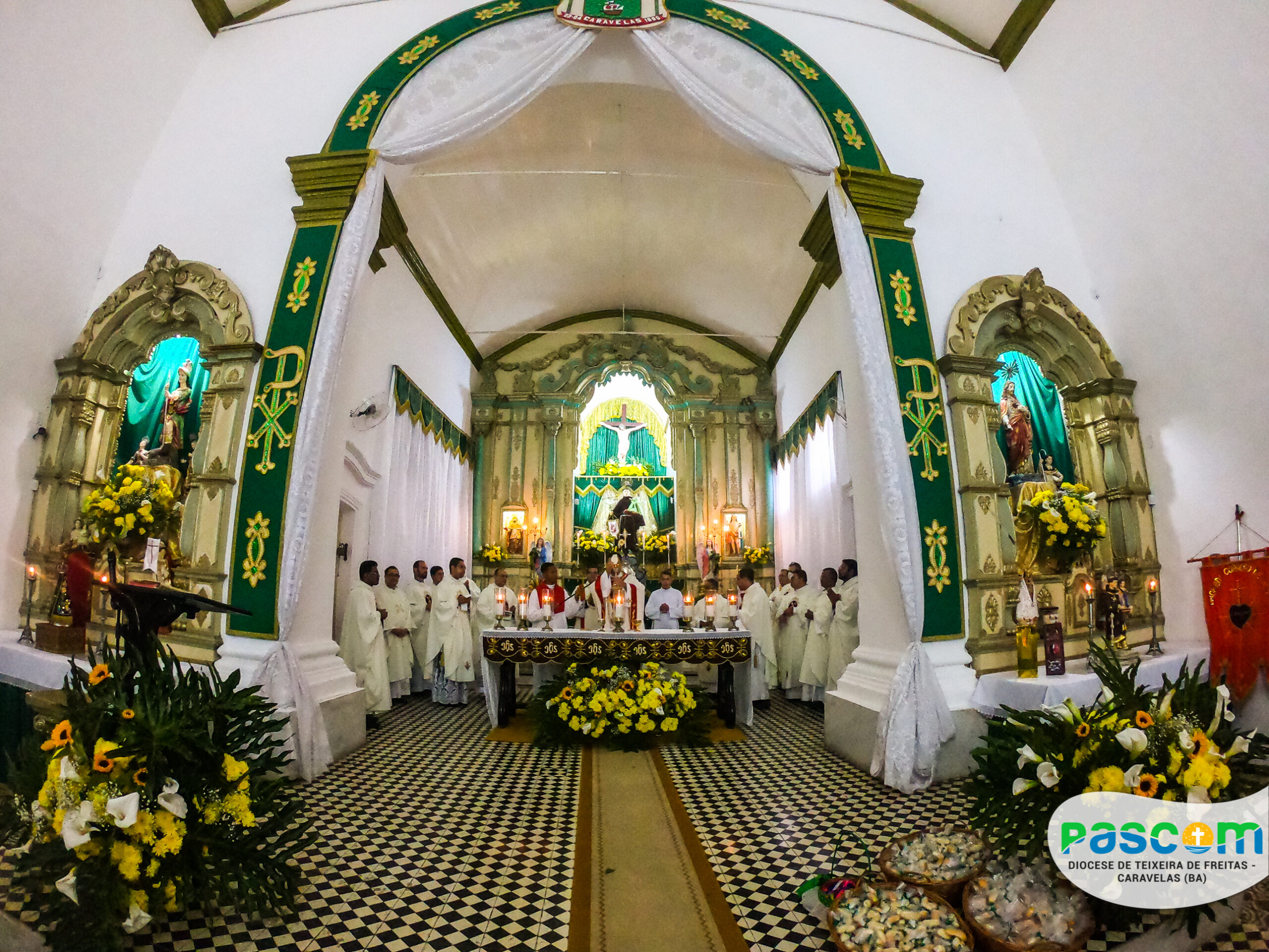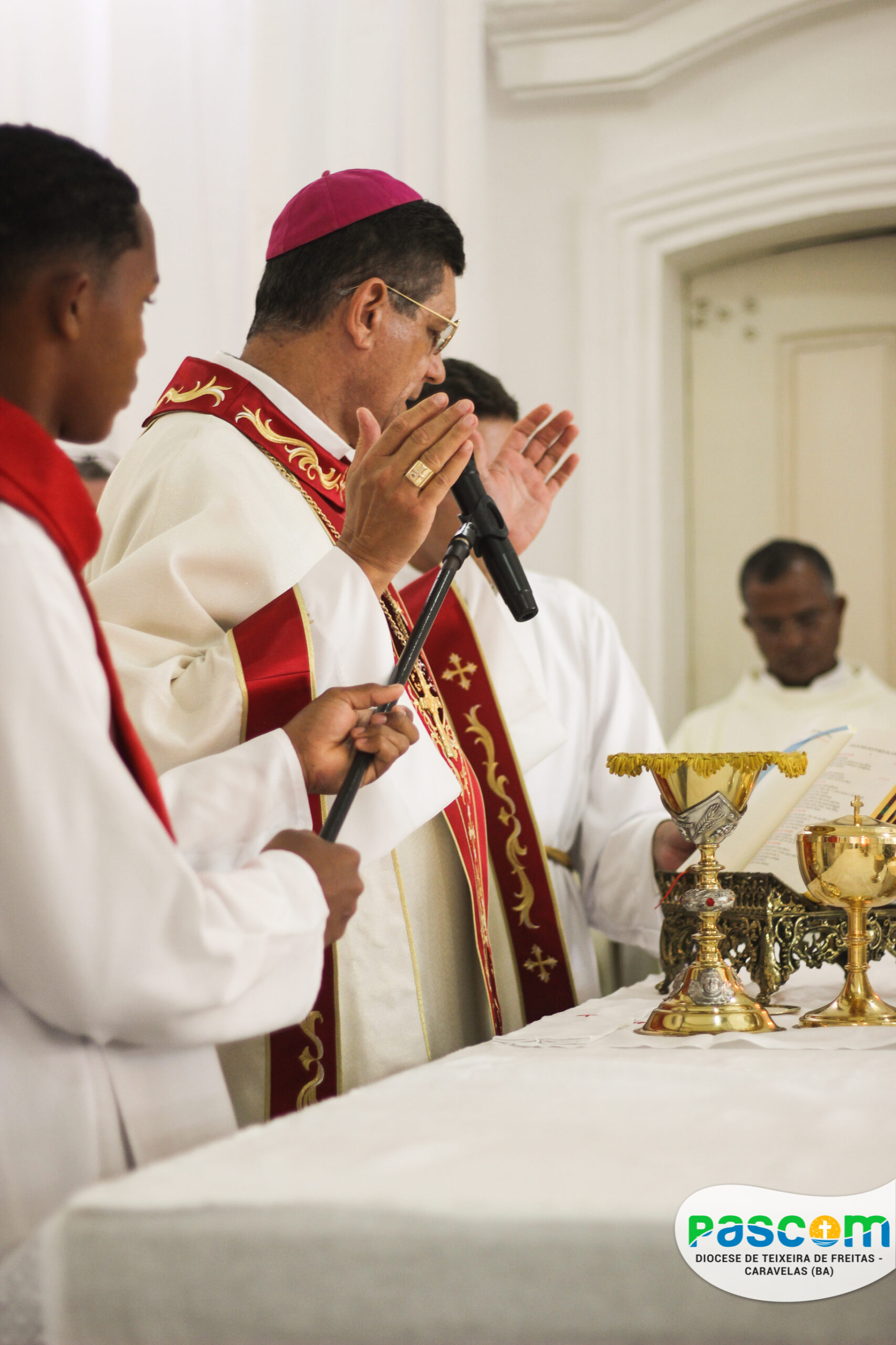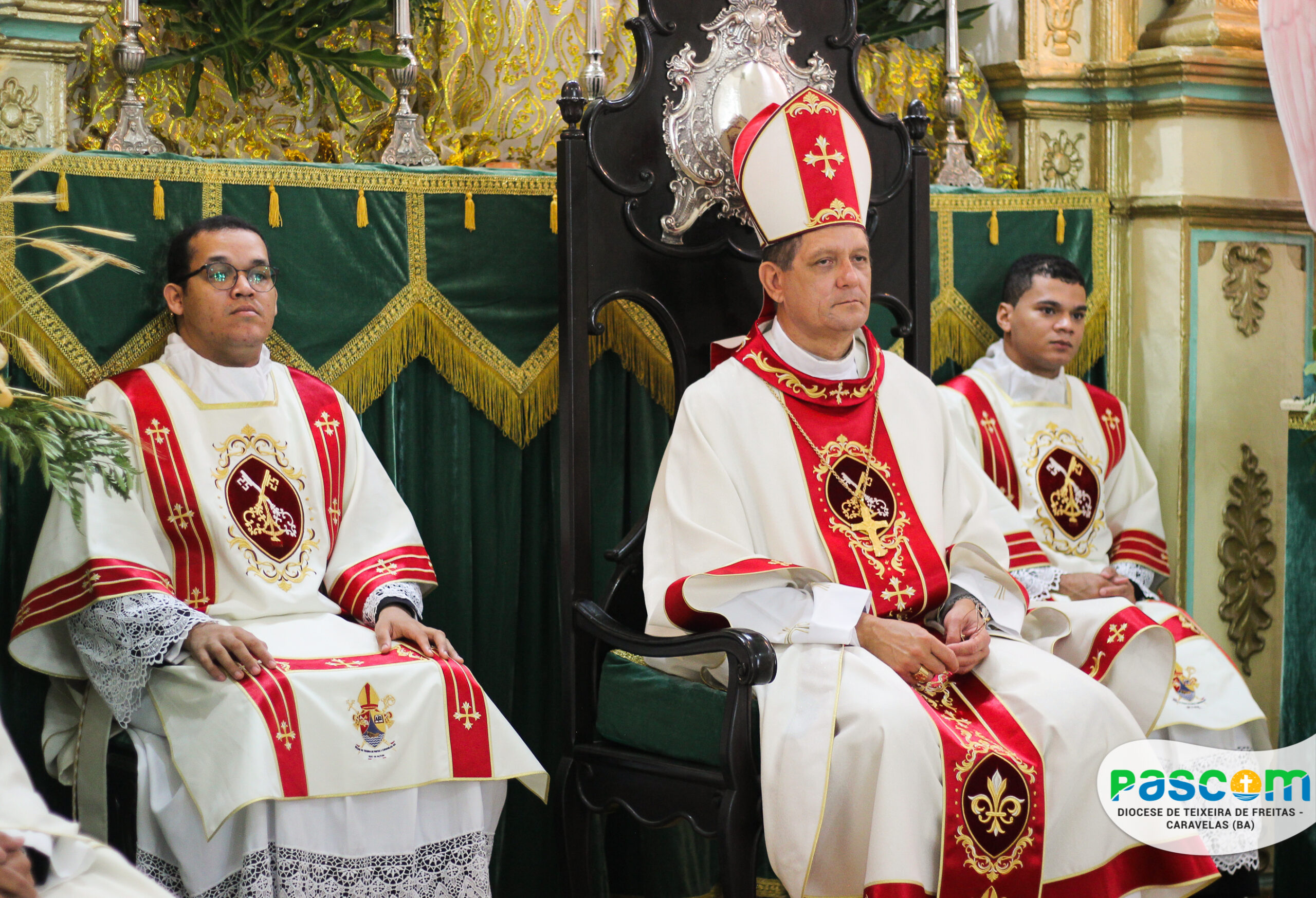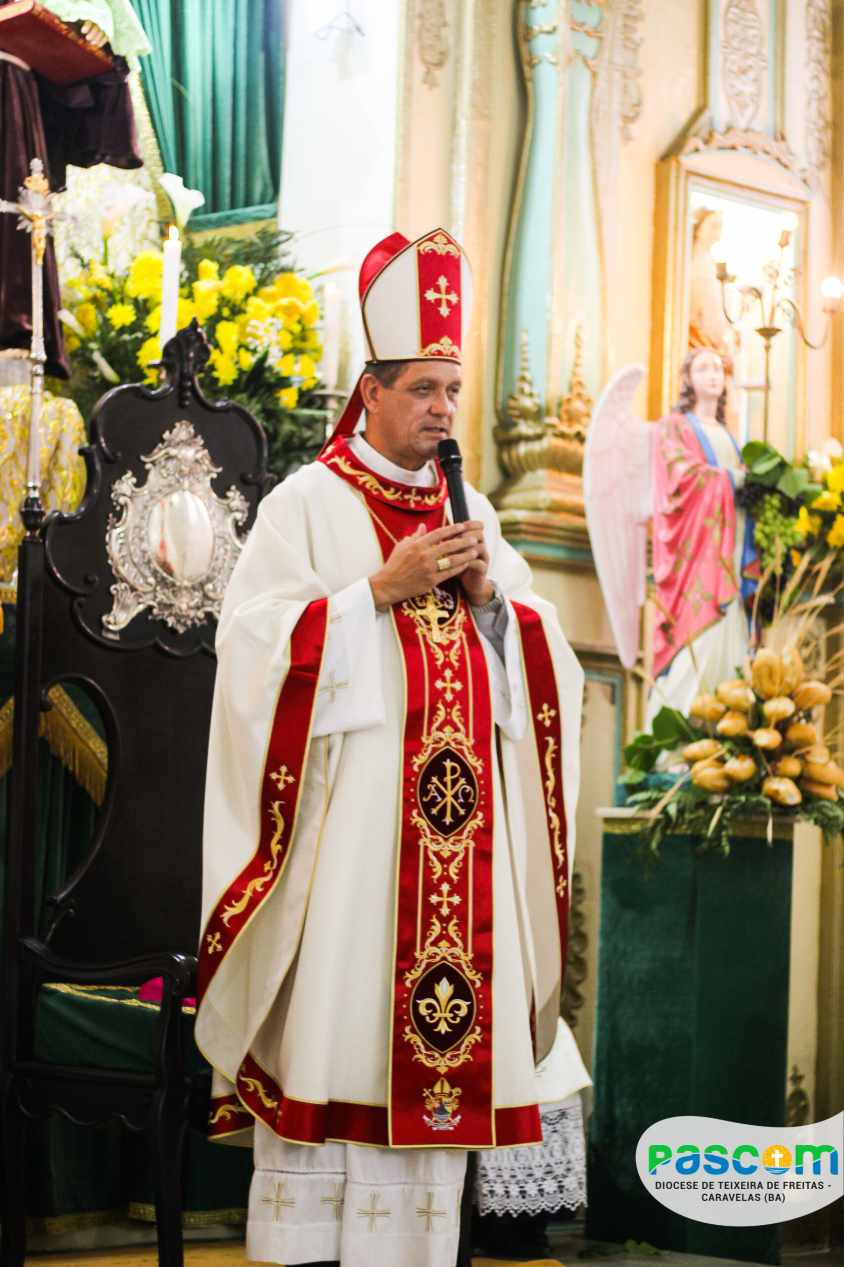 Em sua homilia, Dom Jailton destacou que o Santo Padre o Papa Francisco enviou saudações para a Diocese de Teixeira de Freitas/Caravelas. Dom Jailton ressaltou que a Diocese de modo geral tem um sentimento de gratidão por Caravelas por ser o berço da nossa diocese. “Daqui de Caravelas o Evangelho foi sendo captalizado por várias regiões do Extremo Sul e hoje já temos mais de 30 paróquias que podemos considerar como filhas de Caravelas”, disse Dom Jailton.