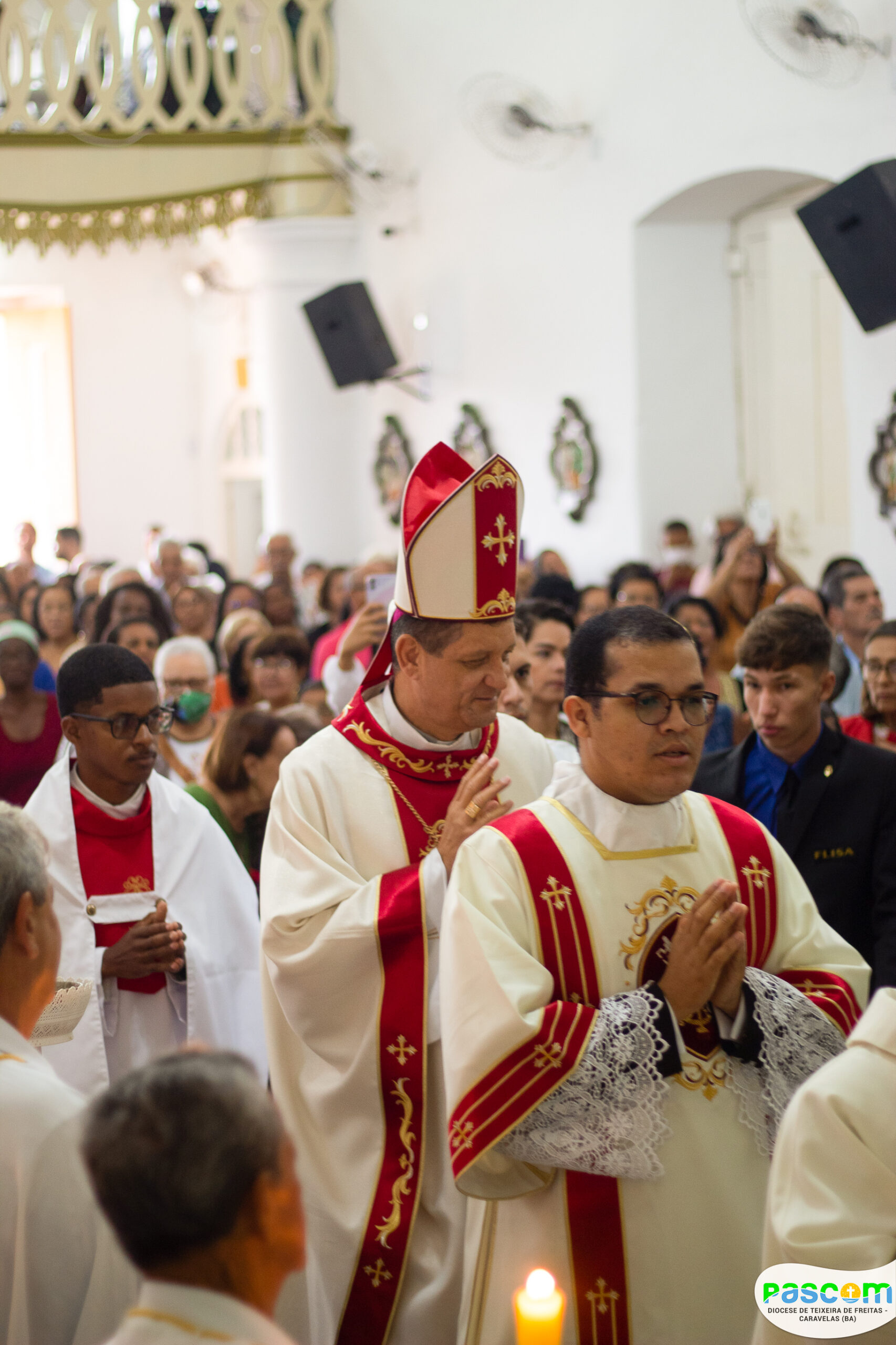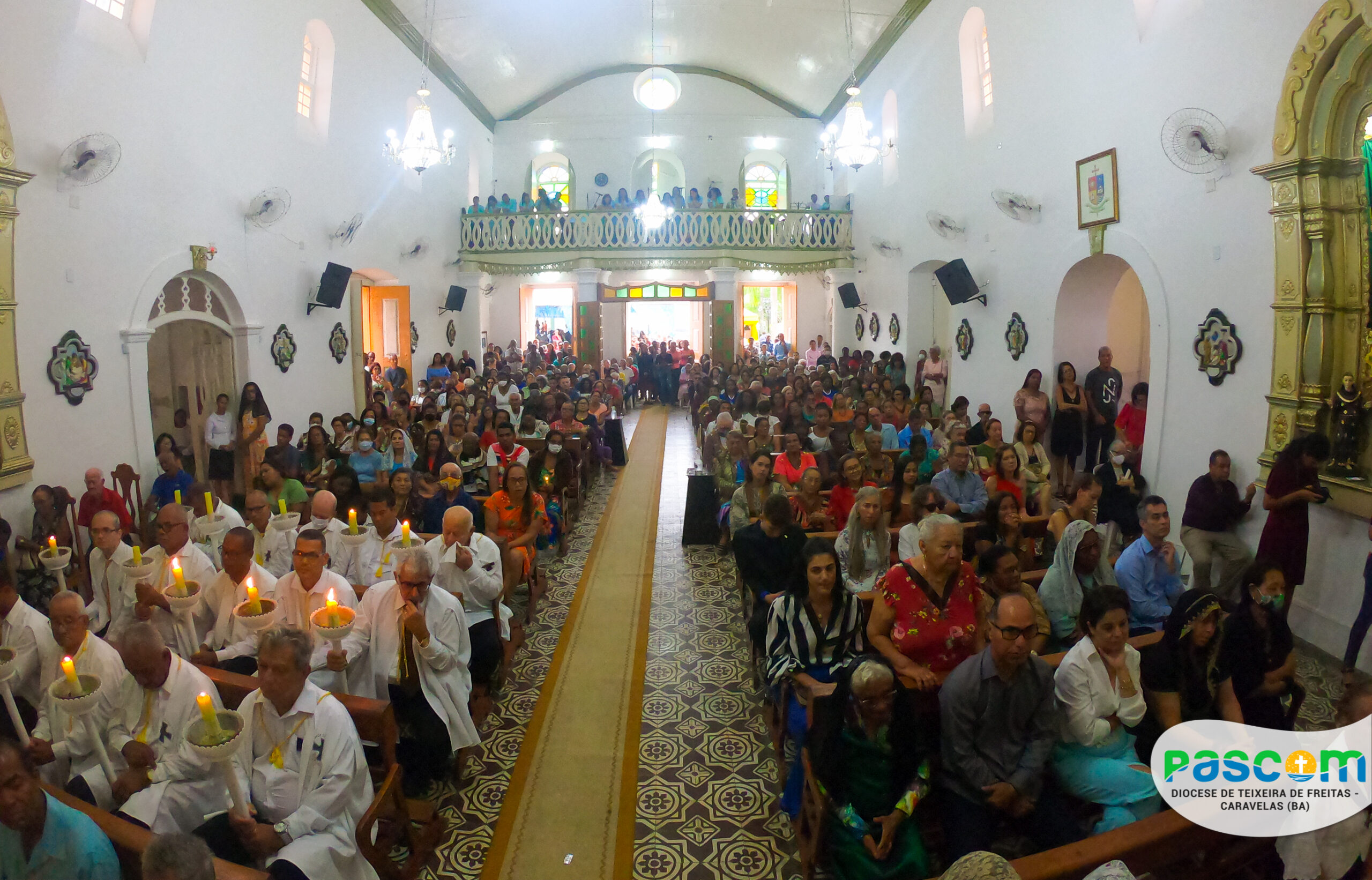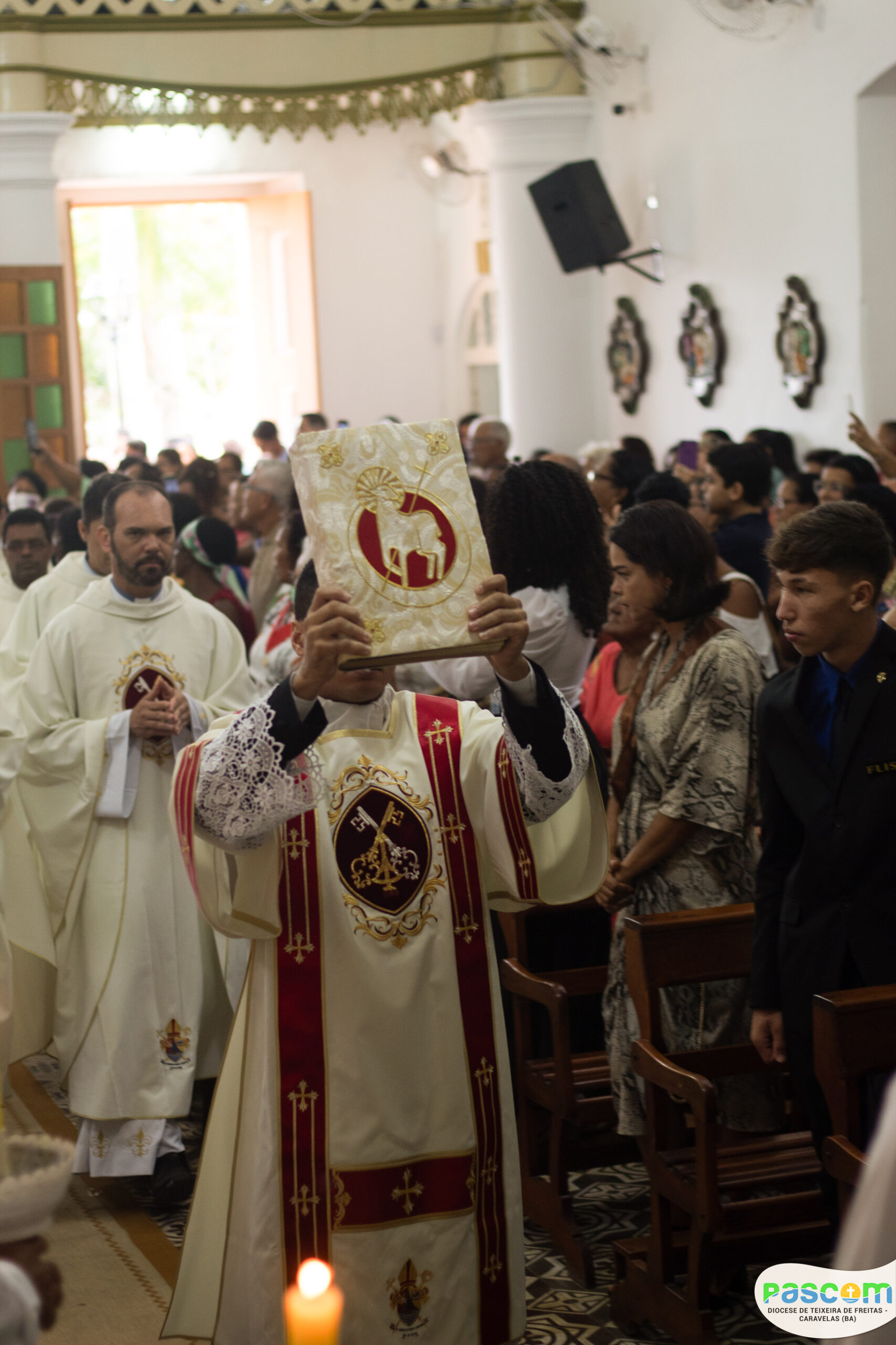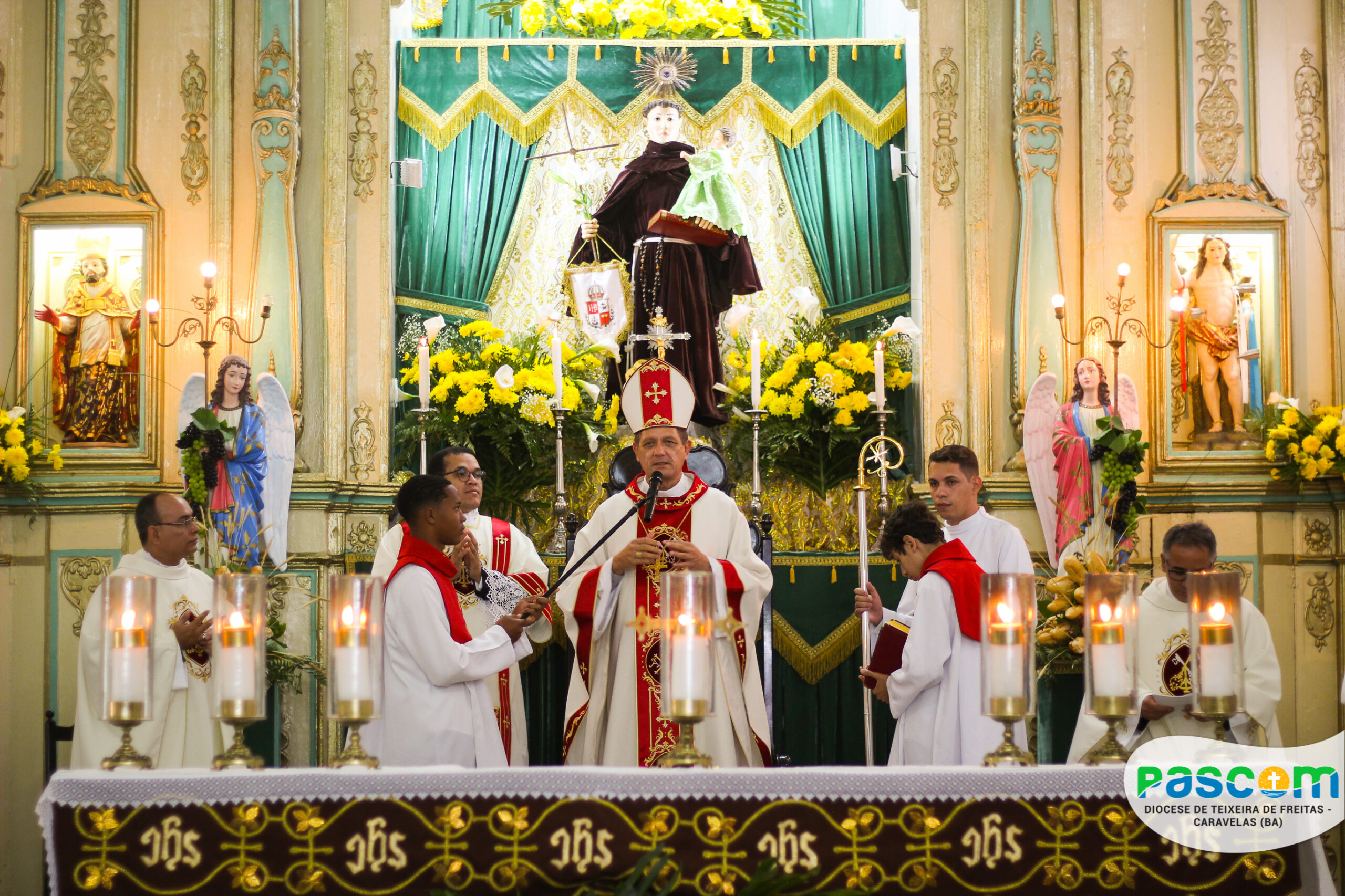 Em sua homilia, Dom Jailton destacou que o Santo Padre o Papa Francisco enviou saudações para a Diocese de Teixeira de Freitas/Caravelas. Dom Jailton ressaltou que a Diocese de modo geral tem um sentimento de gratidão por Caravelas por ser o berço da nossa diocese. “Daqui de Caravelas o Evangelho foi sendo captalizado por várias regiões do Extremo Sul e hoje já temos mais de 30 paróquias que podemos considerar como filhas de Caravelas”, disse Dom Jailton.