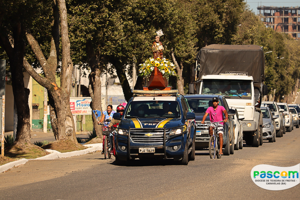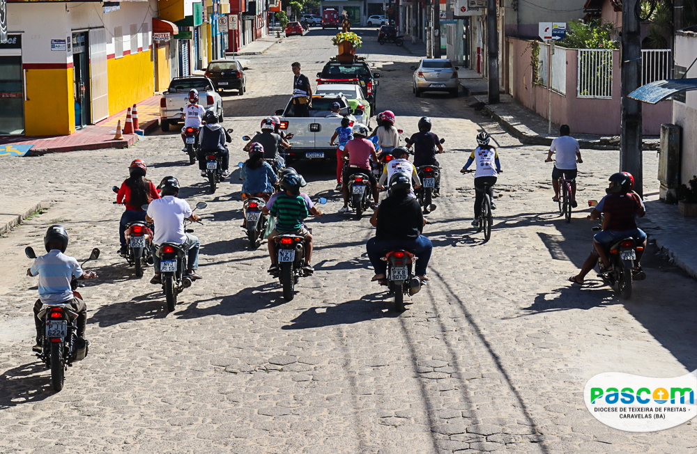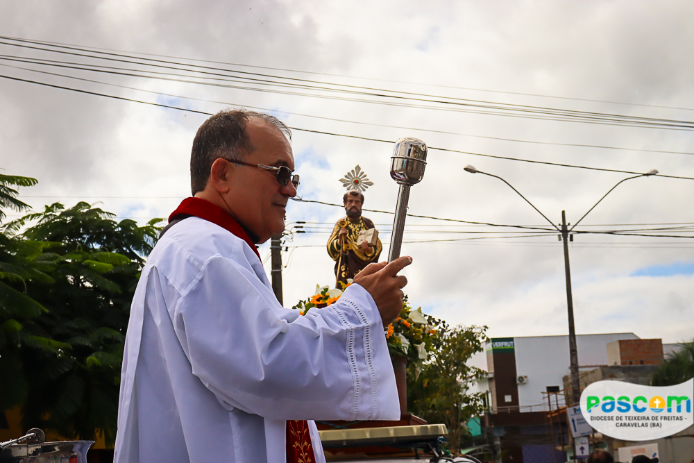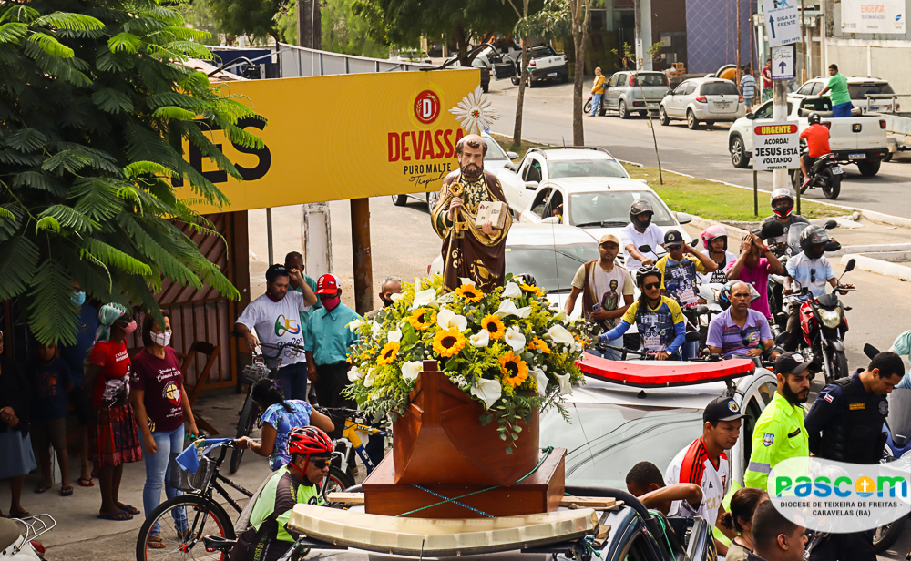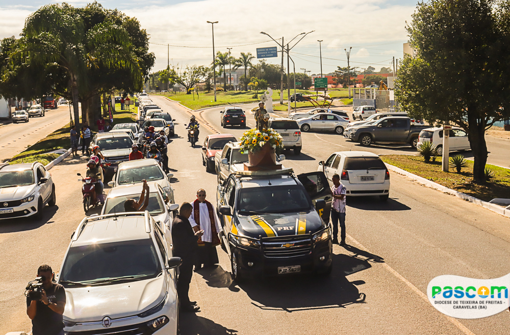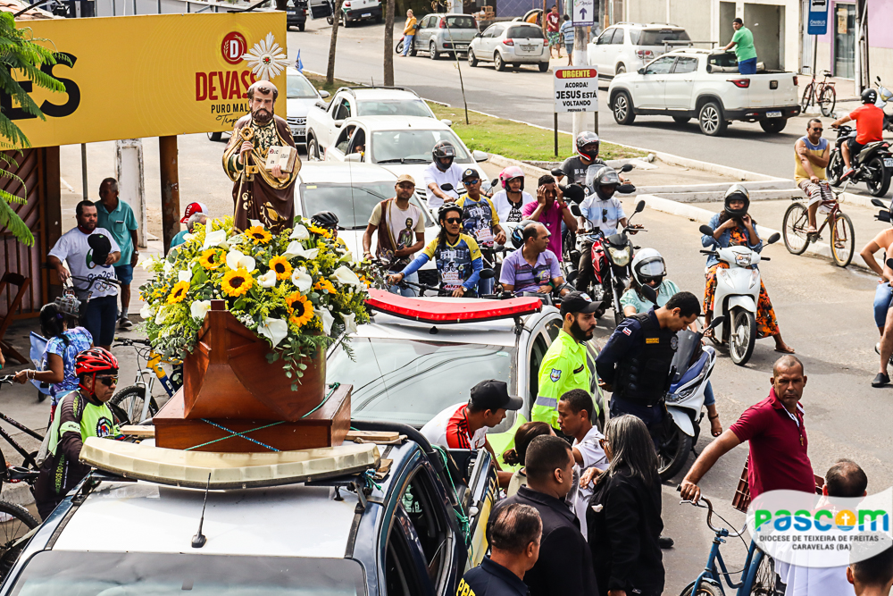 A Igreja celebra hoje, 29 de junho, a Solenidade de São Pedro e São Paulo, apóstolos que são pilares da nossa Igreja, e exemplos de fé e coragem para os cristãos católicos. Na cidade de Teixeira de Freitas – BA, que tem como padroeiro São Pedro, os fiéis reuniram-se pela manhã para participar da tradicional carreata em honra a São Pedro. A carreata teve início às 09h, saindo do trevo da cidade, percorrendo a Avenida Presidente Getúlio Vargas em direção a Catedral Diocesana.