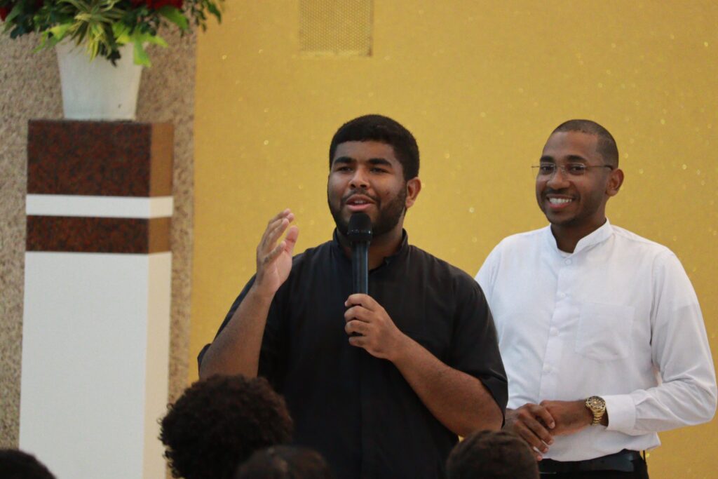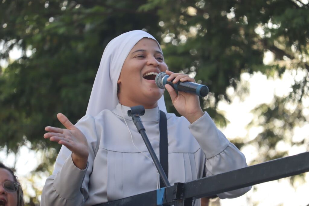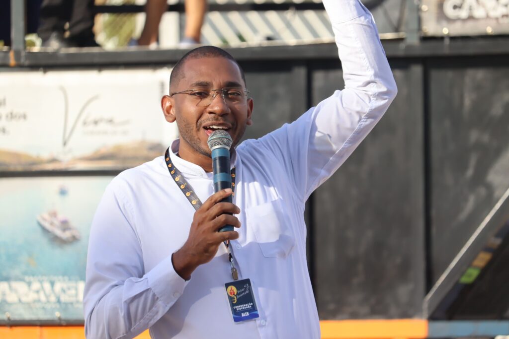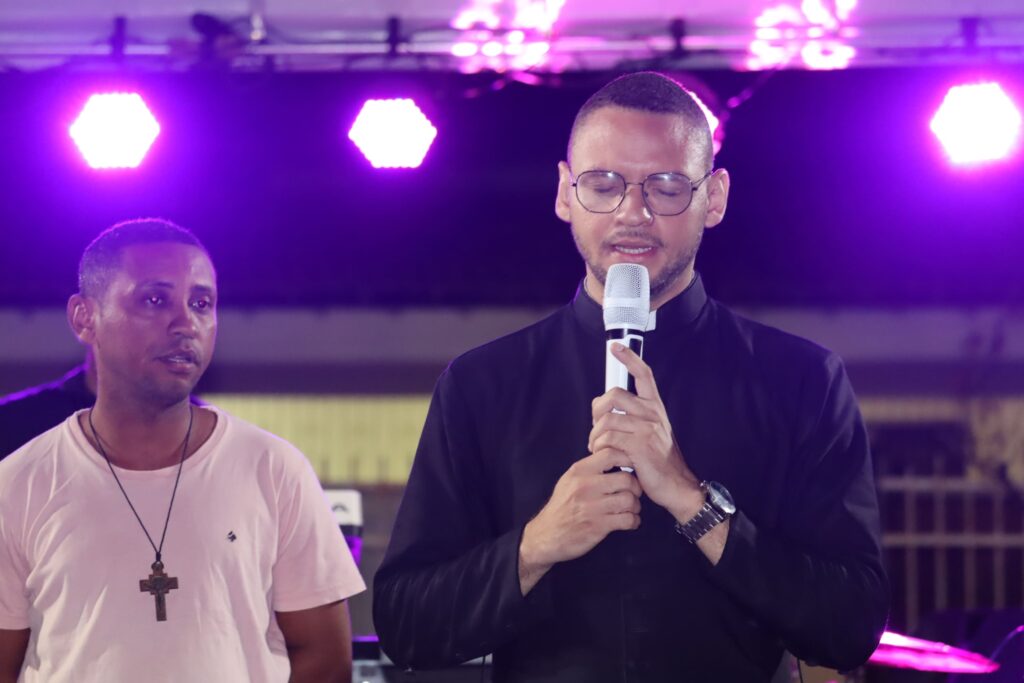 Na sequência, já no interior da igreja, a juventude foi animada com o show do cantor Cosme, do Rio de Janeiro, que, além da música, partilhou seu testemunho de vida, tocando os corações e incentivando os jovens na caminhada cristã.