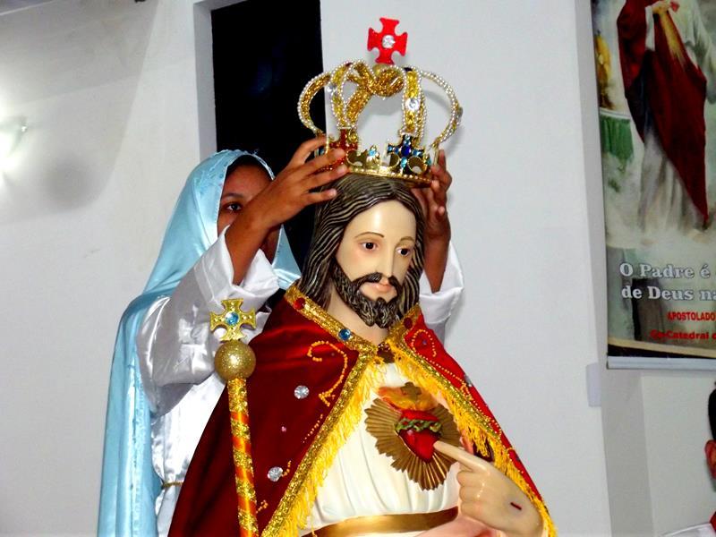 Às 18h30 deu início com uma breve procissão, seguida de um rito de coroação da imagem de Jesus, simbolizando rei eterno, majestoso e misericordioso.