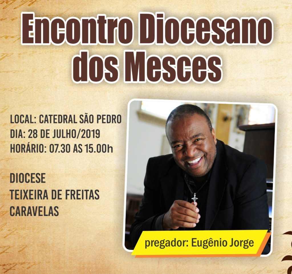 Acontecerá no próximo domingo, 28 de julho de 2019, das 8h às 14h na Catedral São Pedro em Teixeira de Freitas, o Encontro Diocesano de Ministros Extraordinários da Sagrada Comunhão Eucarística da Diocese de Teixeira de Freitas/Caravelas, com o tema: “Nossa missão: Aonde mandar eu irei.” O encontro contará com a presença do cantor Eugênio Jorge.