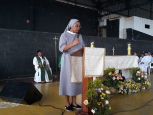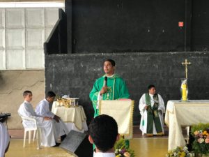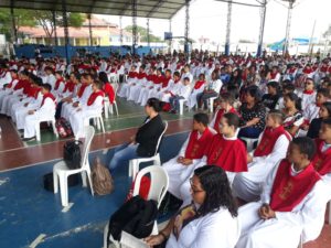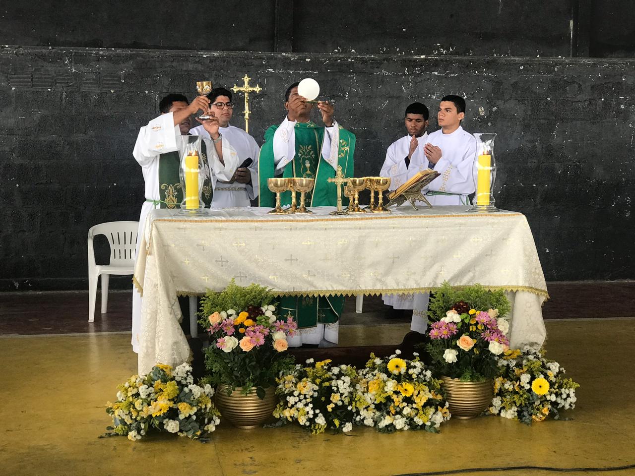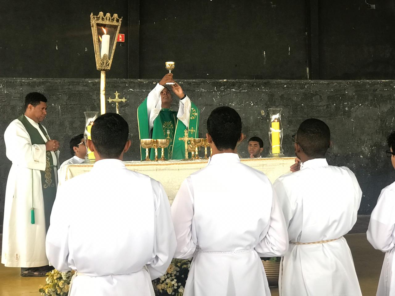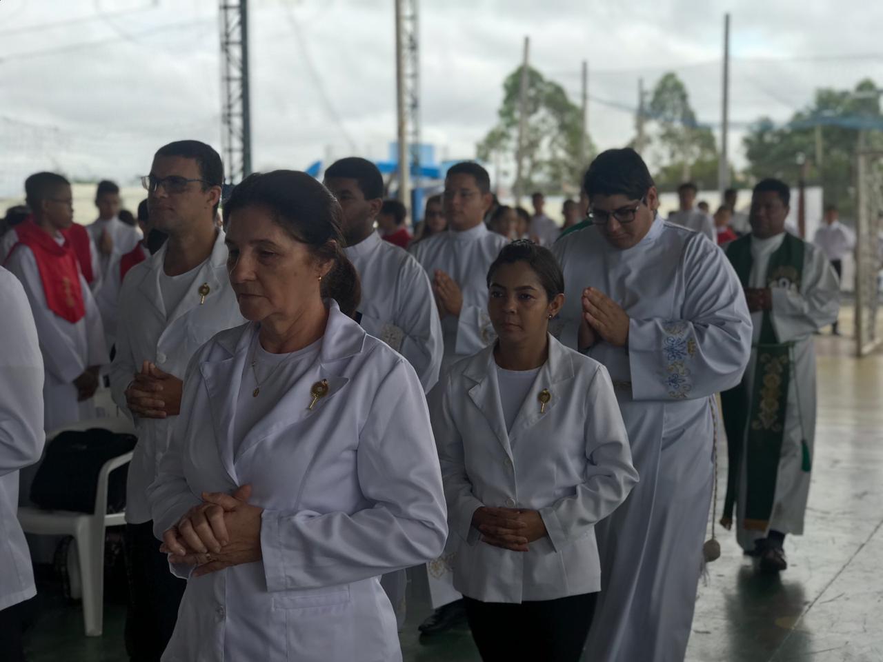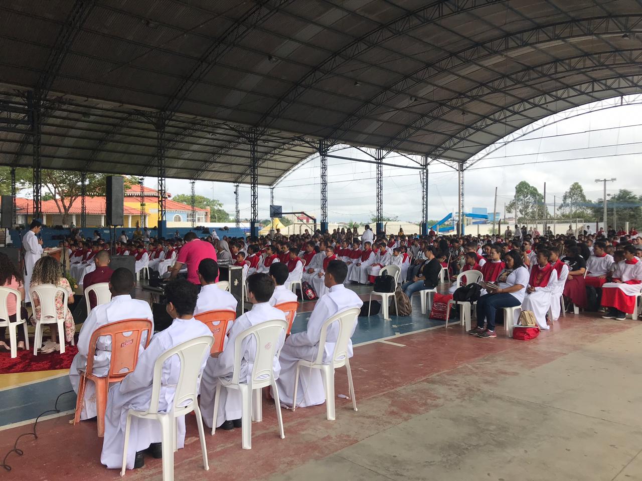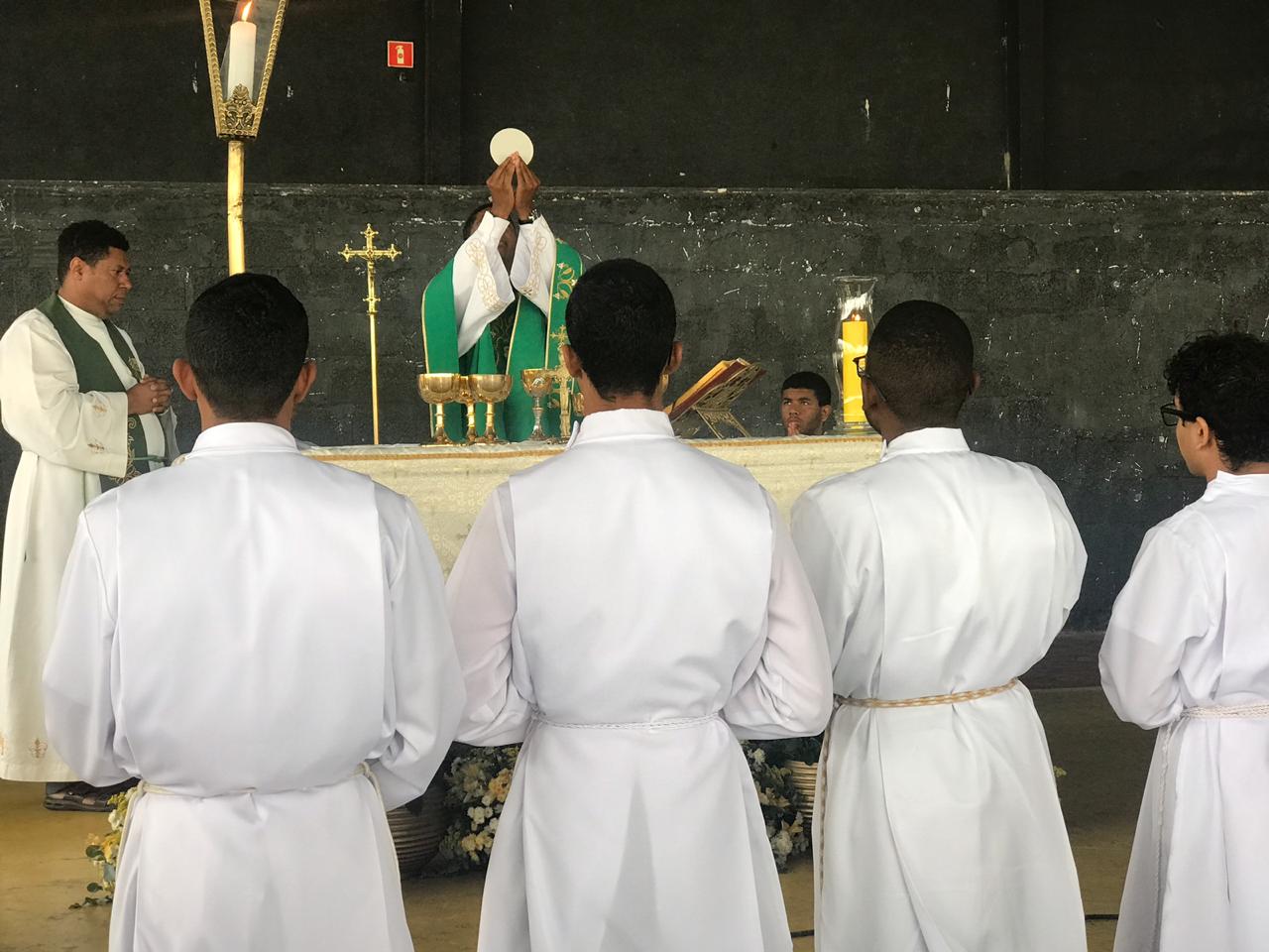 No último domingo, dia 25 de agosto, aconteceu o II Encontro Diocesano de Coroinhas e Cerimoniários, no Clube Jacarandá, em Teixeira de Freitas. Participaram da programação aproximadamente 500 pessoas, entre jovens, adolescentes, crianças e seus familiares advindos das paróquias de nossa diocese. O encontro iniciou-se às 08h com um belíssimo café da manhã reforçado, seguida da Santa Missa, presidida pelo assessor diocesano, Pe. Roberto Pereira da Silva e concelebrada pelo Pe. Márcio José da Silva.